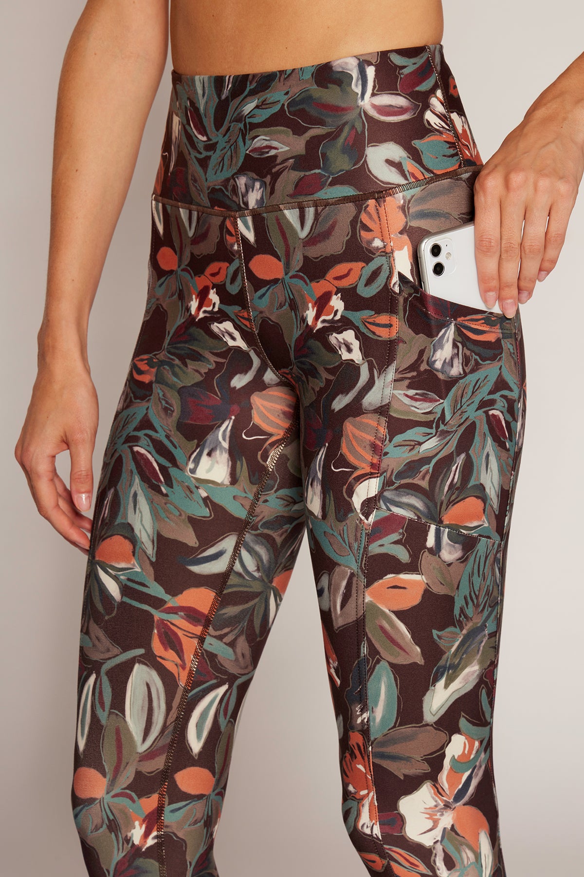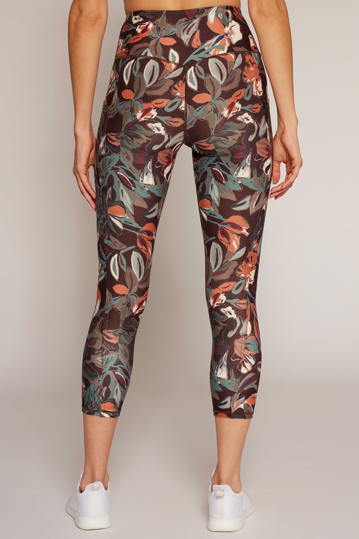 Drew Tummy Control Pocket Mid Calf (Choc Plum Abstract Acrylic Floral)