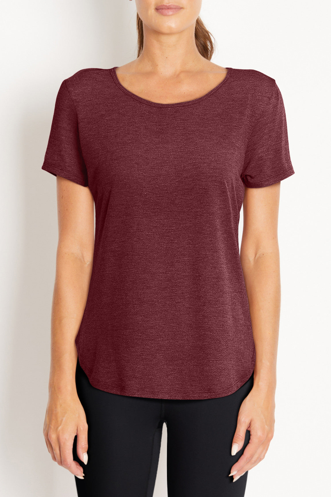 In a sweat-wicking jersey made for hot days and hard workouts, this airy scoopneck top features a keyhole cut-out and a curved high-low hem with extra coverage in the back.