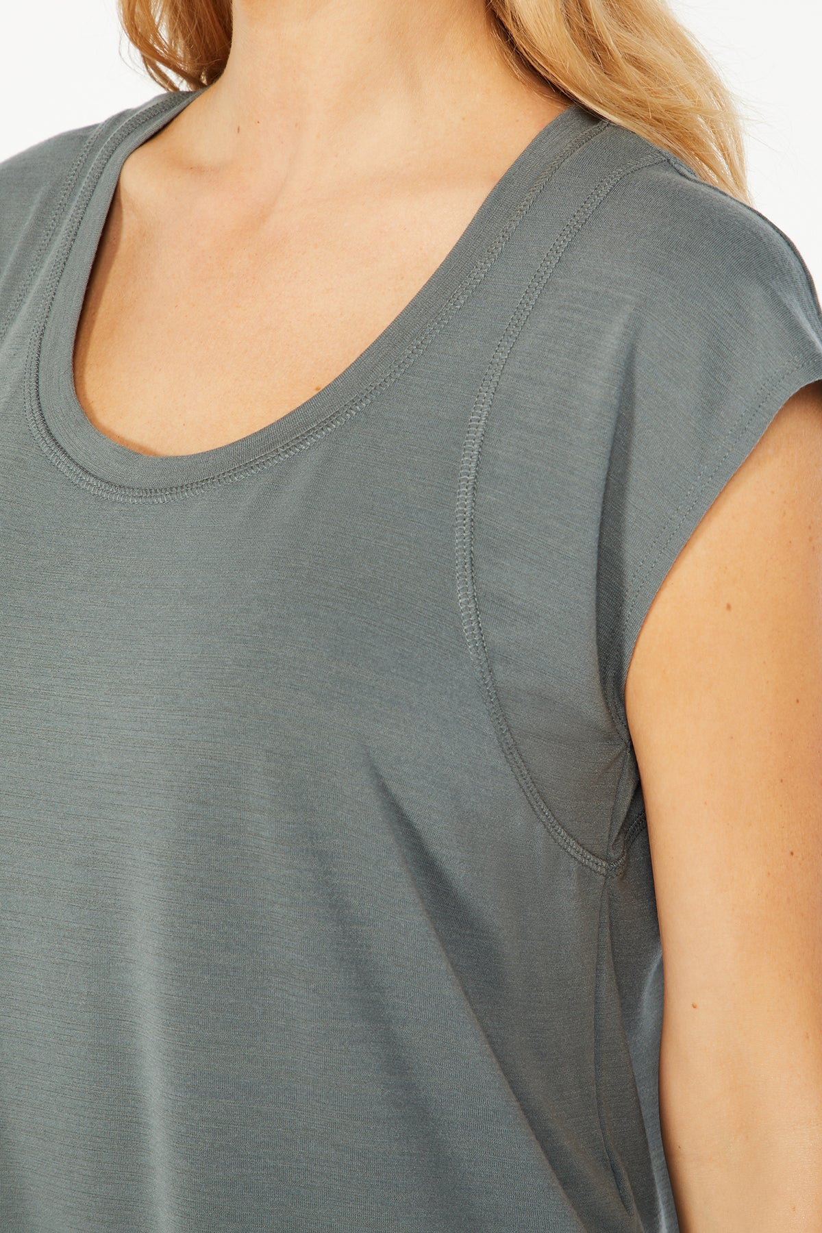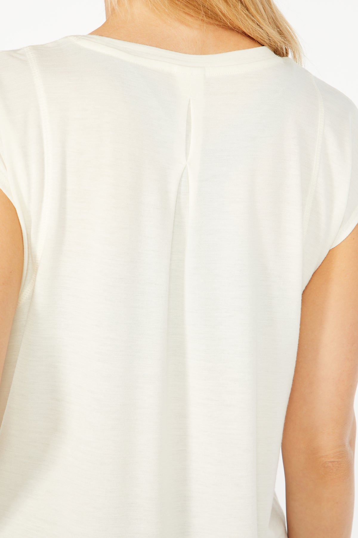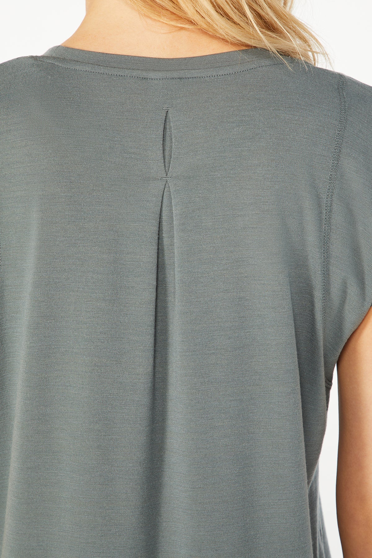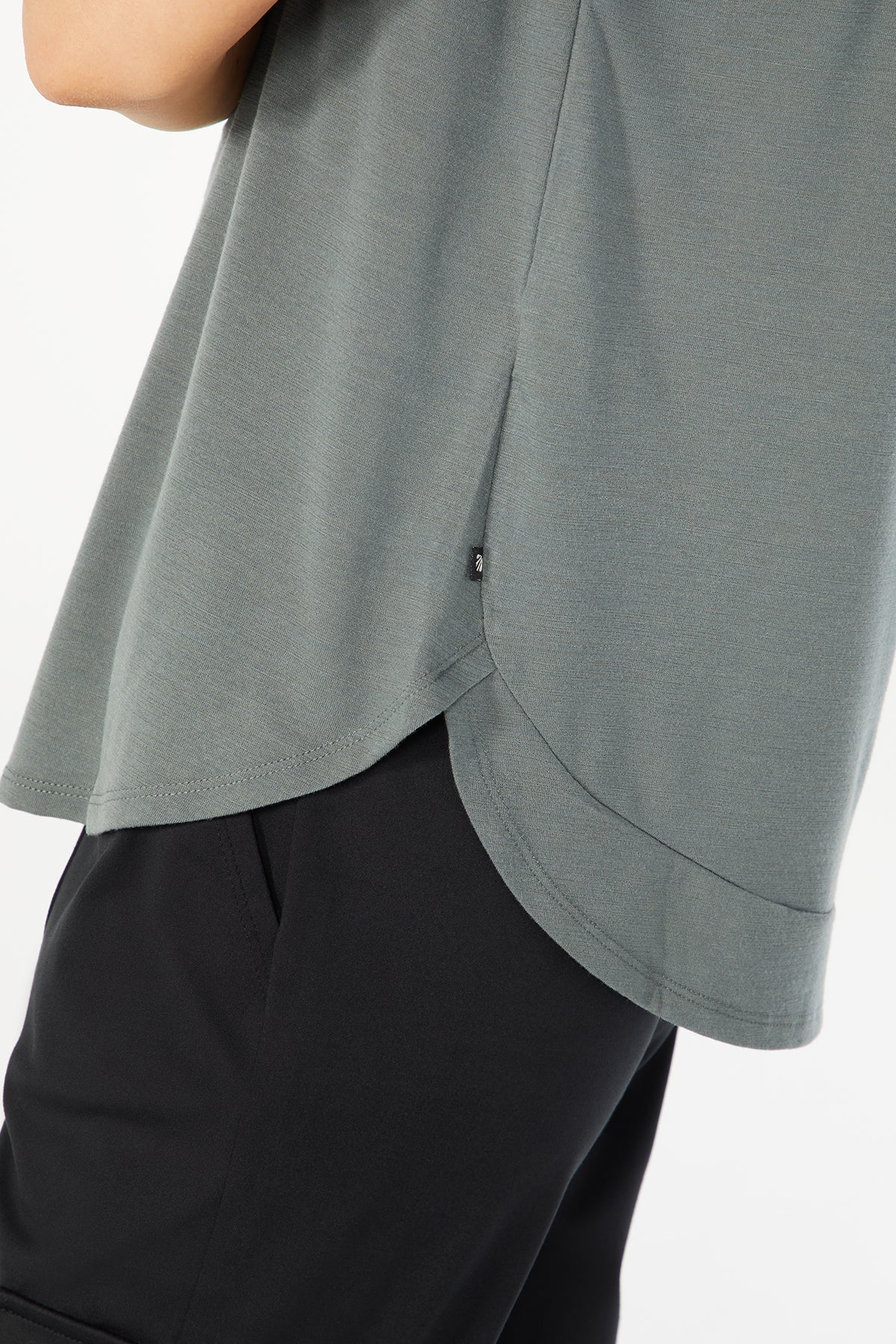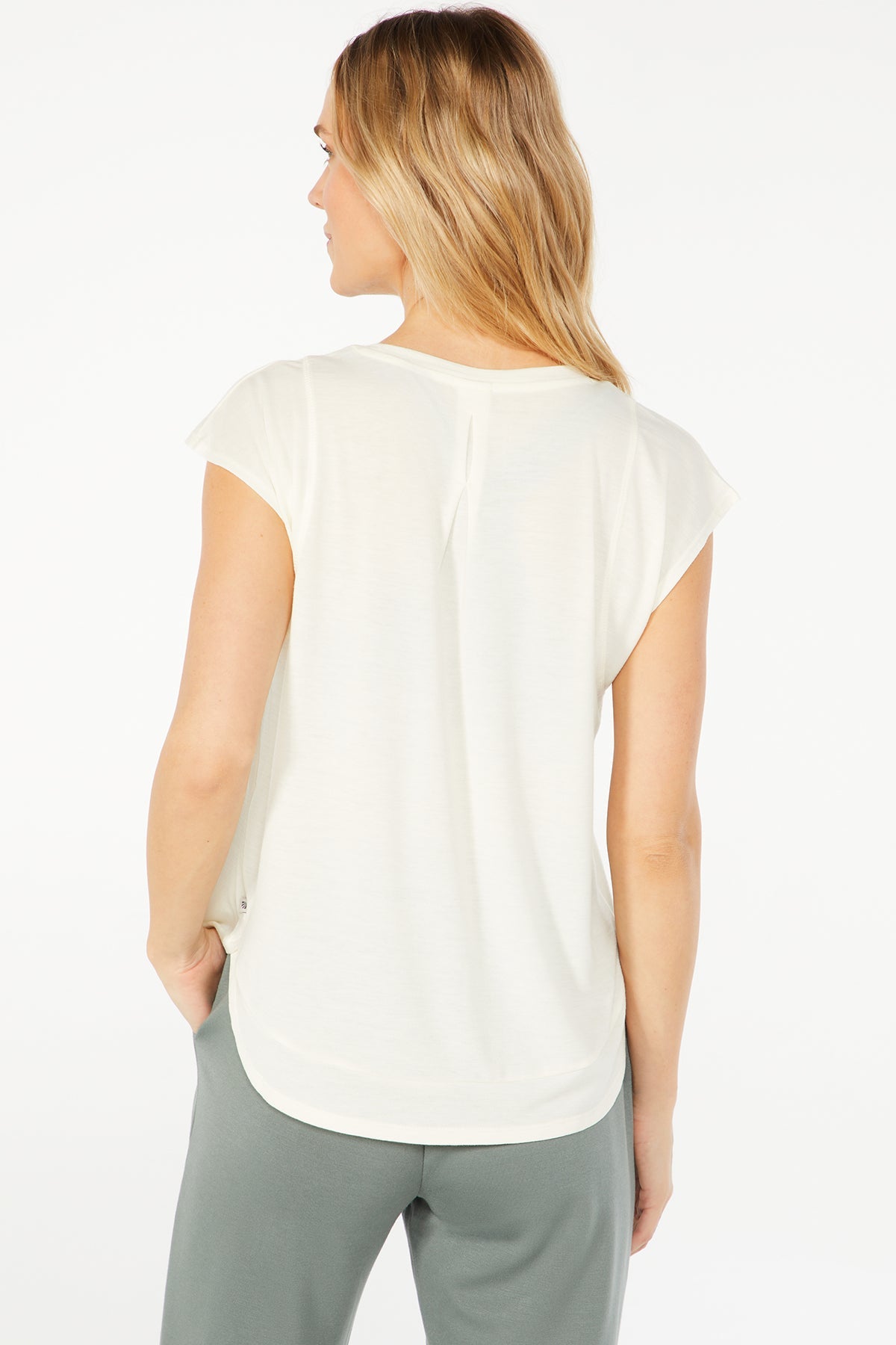 Go from studio to street in this breezy slub knit top, featuring a no-chafe scoop neckline, short sleeves with dropped armholes, and an easy fit finished with a round shirttail hem.