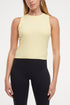 A cute, comfy top for anything on your agenda, this soft rib knit tank features a fitted silhouette, a classic crew neckline, and studio-to-street versatility that can take it from cycling sesh to pottery class.