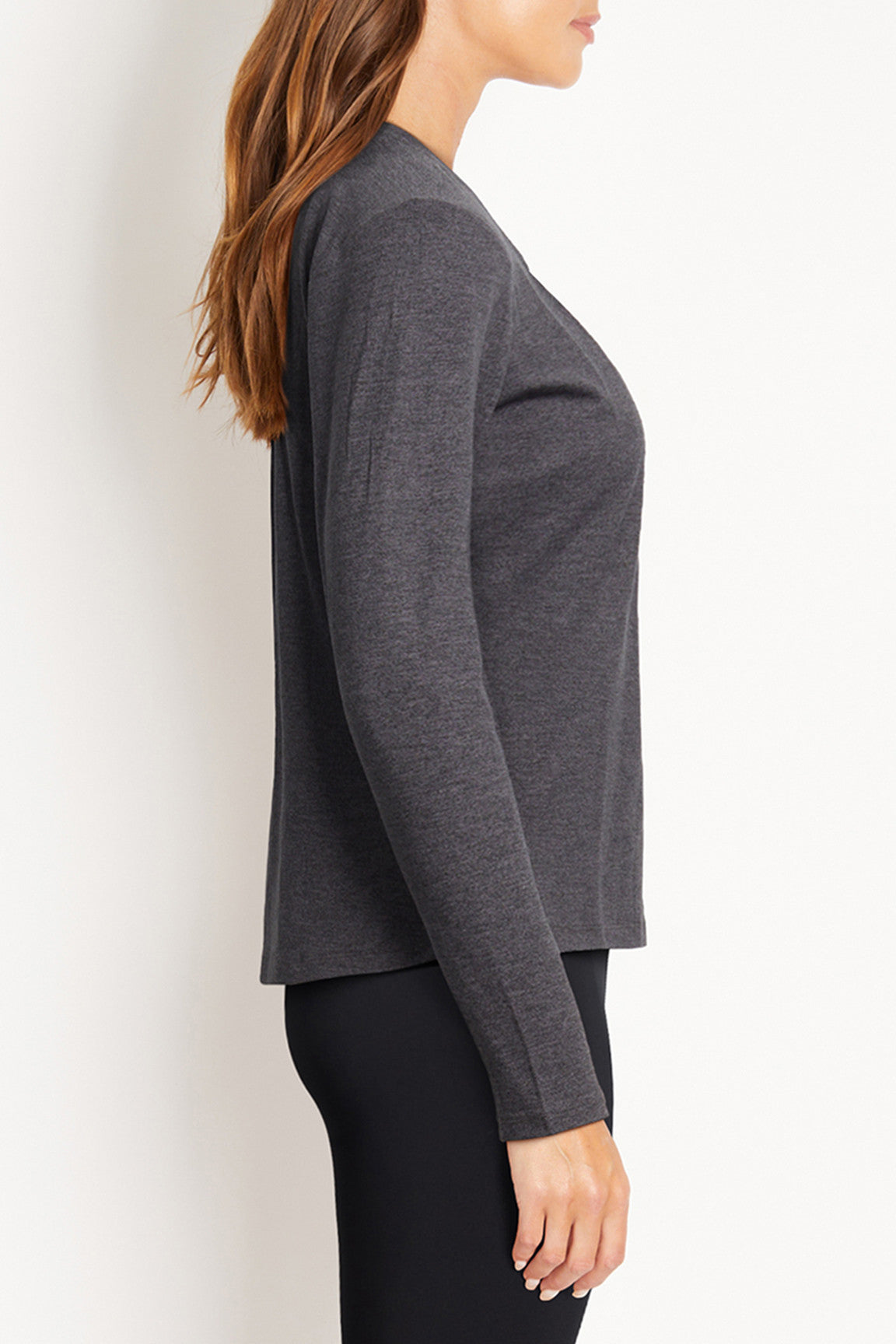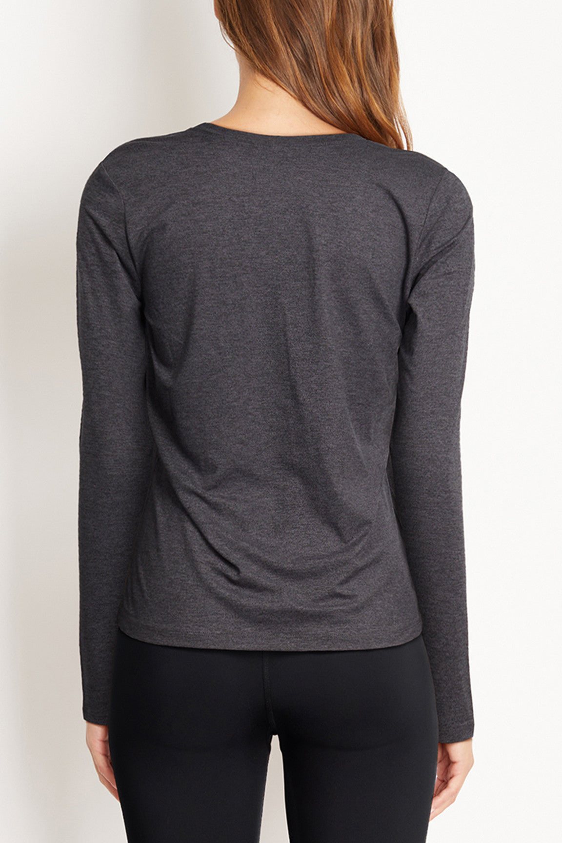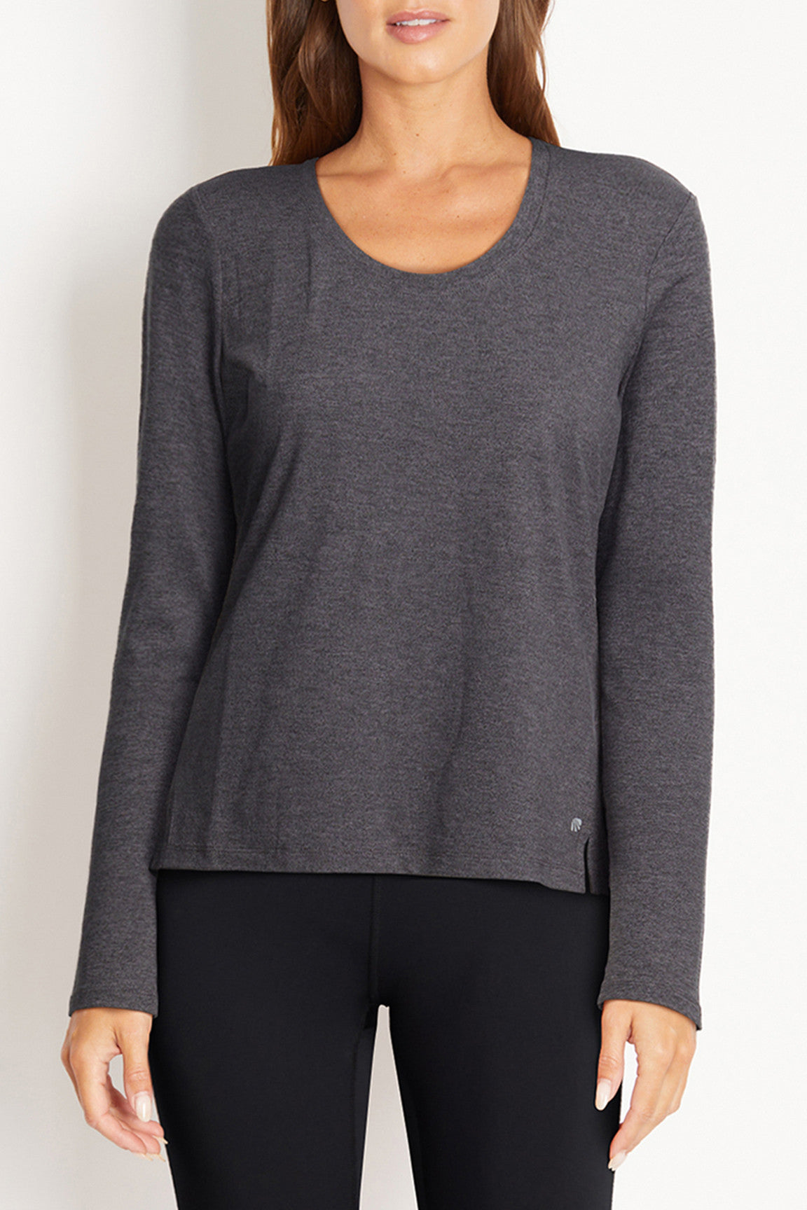 A relaxed fit cut from mélange heather jersey, this long-sleeved, scoopneck top is
