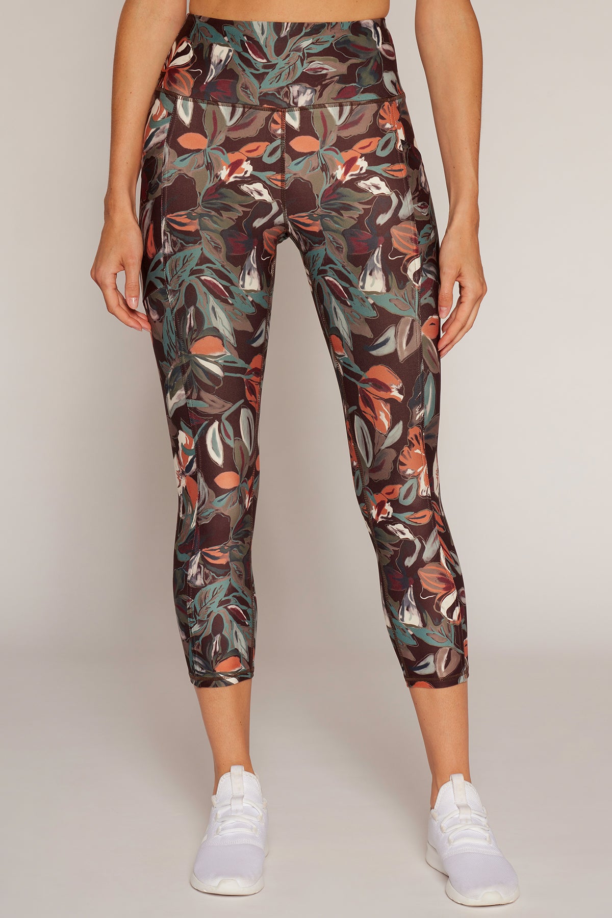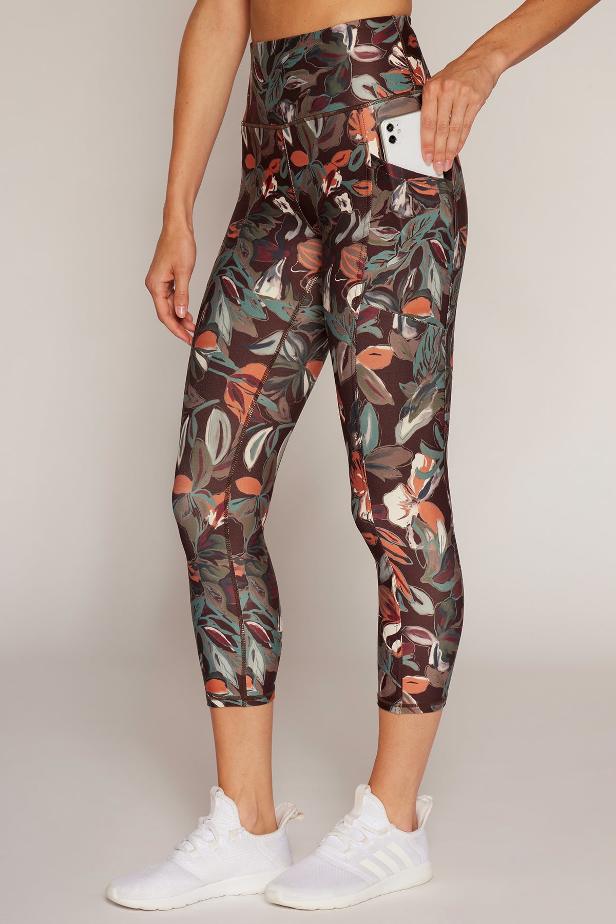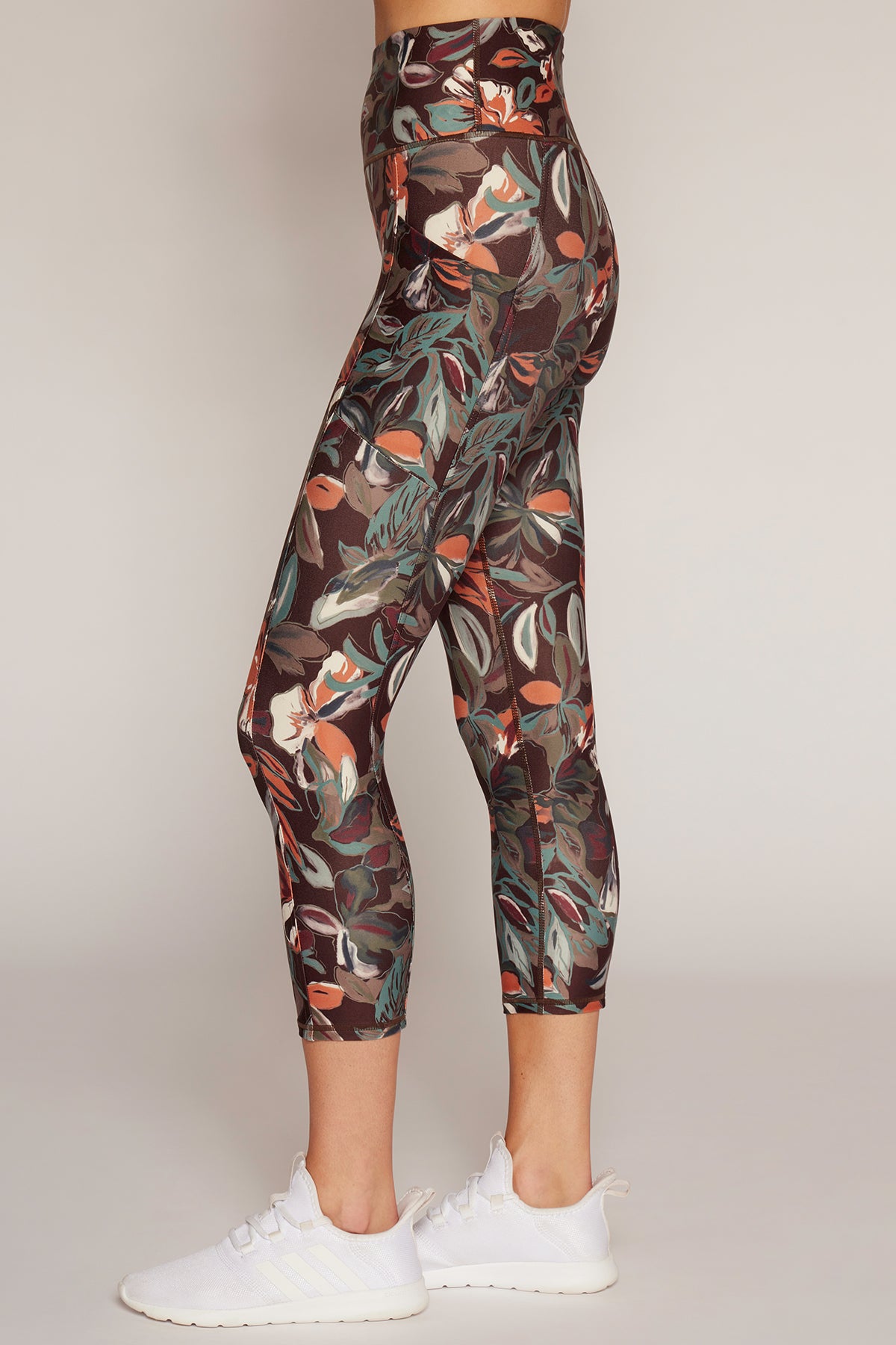 Drew Tummy Control Pocket Mid Calf (Choc Plum Abstract Acrylic Floral)