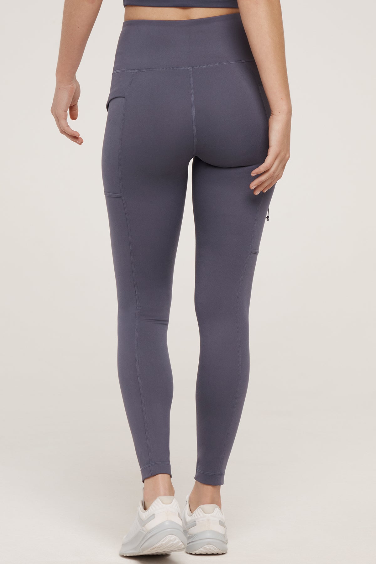 A high-rise silhouette crafted from recycled materials, these soft-brushed, sweat-wicking leggings feature a paneled design with drop-in side pockets and an additional secure-zip compartment to keep your belongings safe.