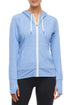 A slim-fit style for studio and street, this zip-front jacket is cut from heathered jersey, soft-brushed on both sides, with a functional drawcord hood, kangaroo pockets, and long sleeves with thumbholes.