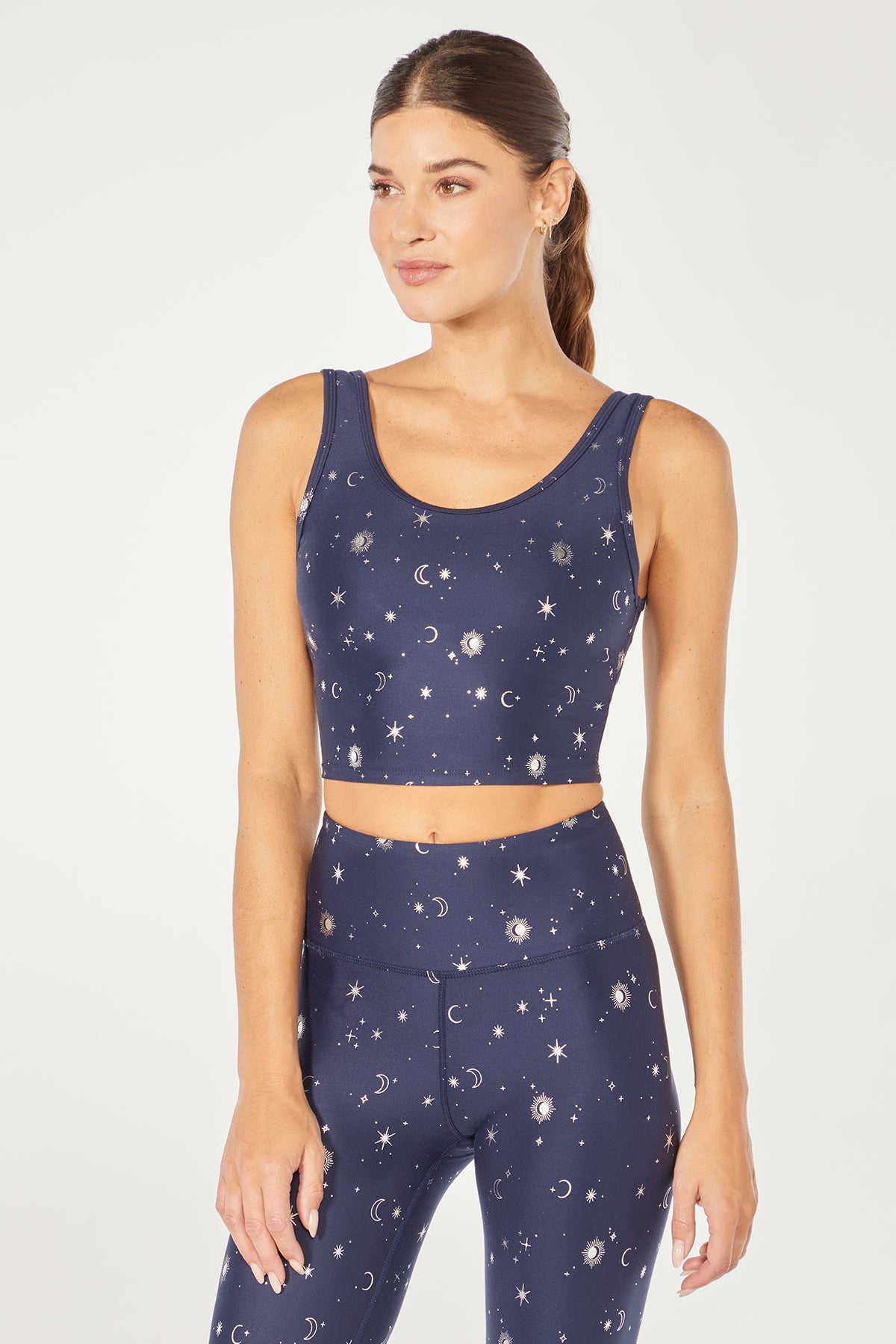 Add some flash to your workout with this sweat-wicking long bra – soft-brushed on both sides, finished with a sky pattern, and featuring an inner shelf lining for extra support.