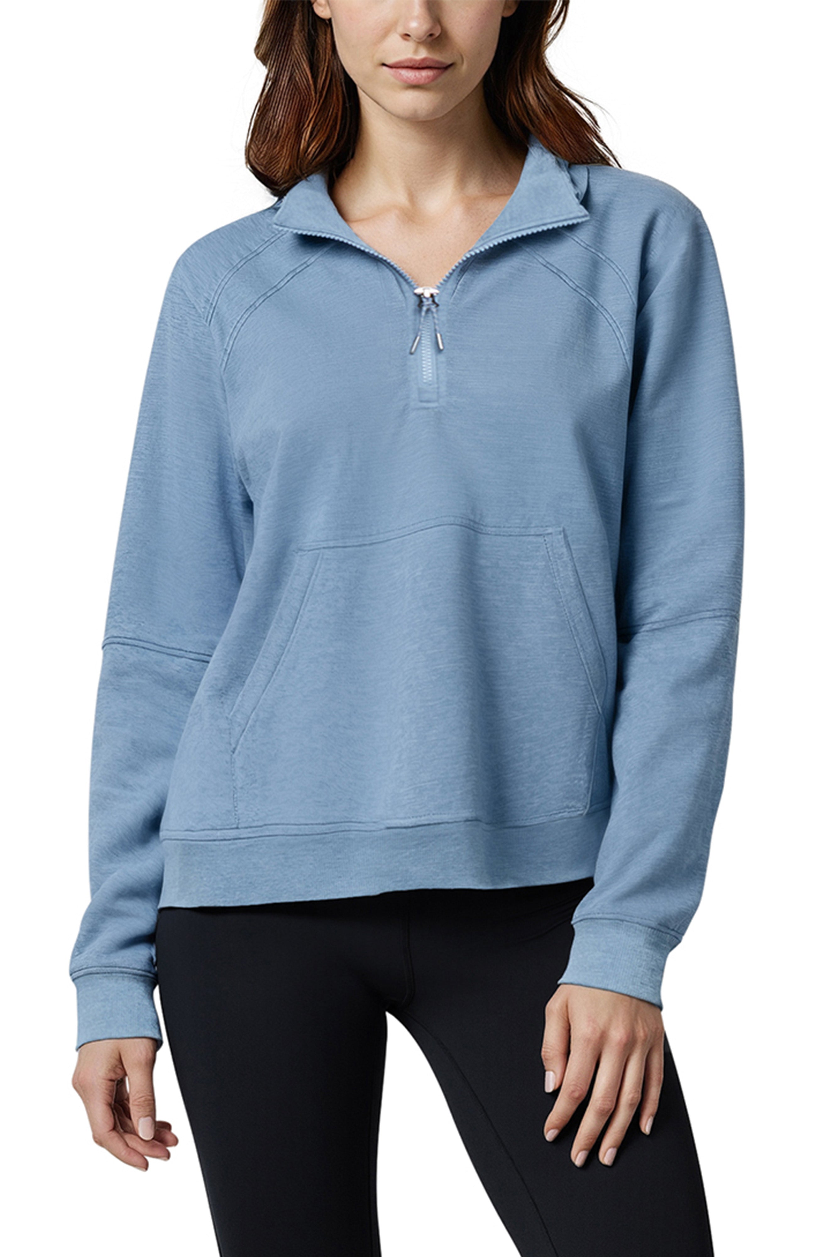 A relaxed fit cut from sanded fleece, this raglan-style pullover features a front zipper, a handy kangaroo pocket, a rib knit hem and cuffs, and brushed softness inside and out.
