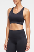 Seam-free and sweat-wicking for your comfort, this jacquard knit sports bra features ribbed panels, curved accenting at the bust, and adjustable shoulder straps that crisscross over the back.
