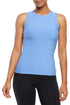 An everyday essential that goes from studio to street to sleek date night ensemble, this versatile rib knit tank top features a fitted silhouette, a classic crew neckline, banded armholes, and a curved back yoke.