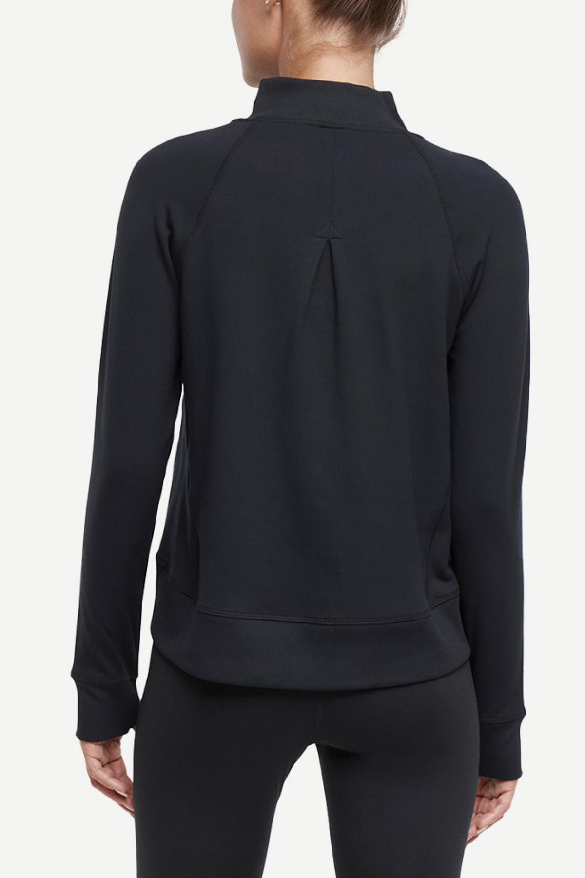 Stand with your heels together, keeping tape straight and perpendicular to the floor. Measure from the high point of your shoulders down the length of your back.