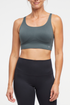 For your comfort, this paneled squareneck bra features adjustable straps for a perfect fit, a cut-out back for ventilation, and a sweat-wicking finish to help keep you dry and cool.
