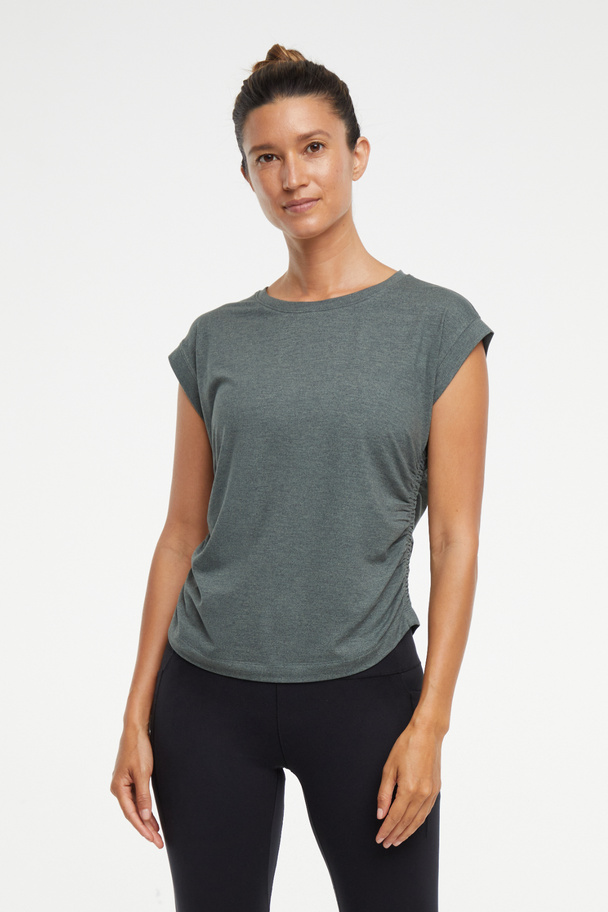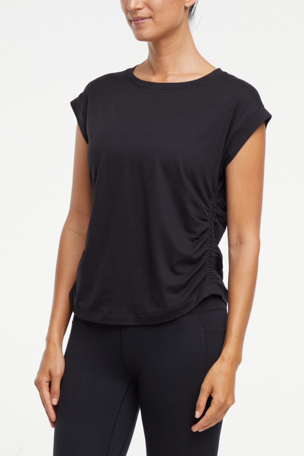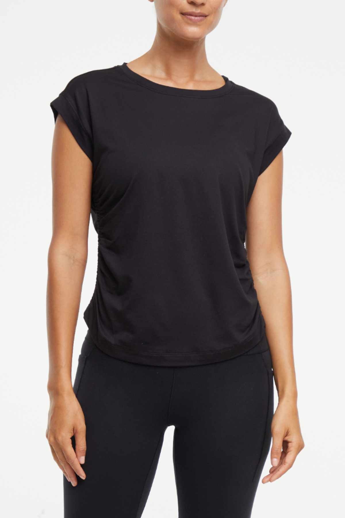 Crafted from our LuxTouch jersey, which is brushed inside and out for ultimate softness, this relaxed-fit top features short cap sleeves and a gathered look with shirring down the side seams.